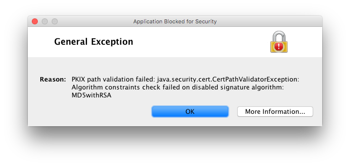 sun.security.validator.ValidatorException: PKIX path validation failed: java.security.cert.CertPathValidatorException: Algorithm constraints check failed on disabled signature algorithm: MD5withRSA