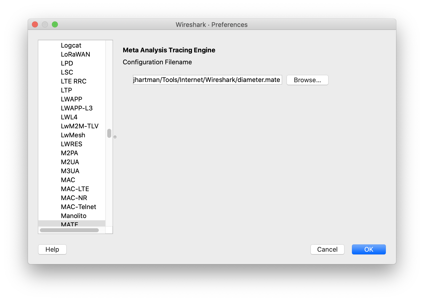 Lucky, MATE is built-in into current version of Wireshark. All we need to do is to create configuration and set it up in Wireshark preferences
